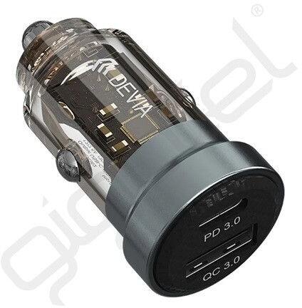 DEVIA PUNK autós töltő USB+Type-C aljzat (30W, PD gyorstöltő 3.0) FEKETE