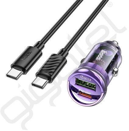 hoco. Z53A autós töltő USB+Type-C aljzat (30W, PD gyorstöltő + Type-C kábel) LILA