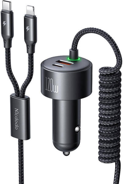 Mcdodo CC-0370 120W 1C+1A autós töltő visszahúzható USB-C és Lightning kábelekkel
